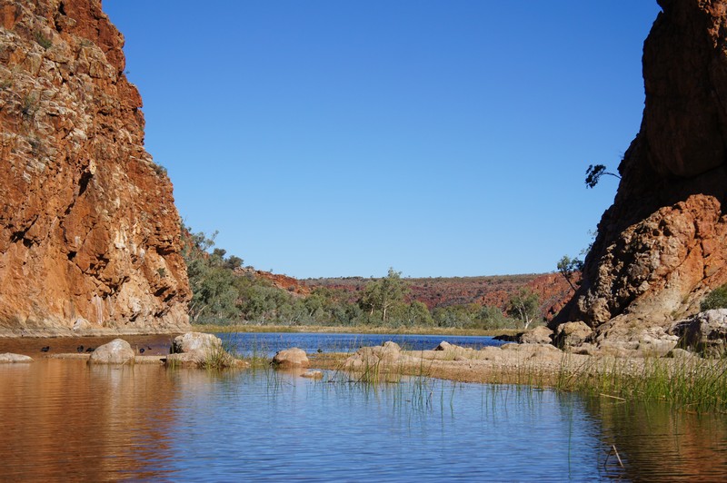 Situé à environ 50 kilomètres d'Alice Spring, ce parc national offre des balades somptueuses donnant sur des gorges spectaculaires. Les parois abruptes accueillent animaux et fleurs sauvages. Nous y aurons vu des Rock Wallaby, espèce de Kangourou de petite taille vivant dans les rochers.