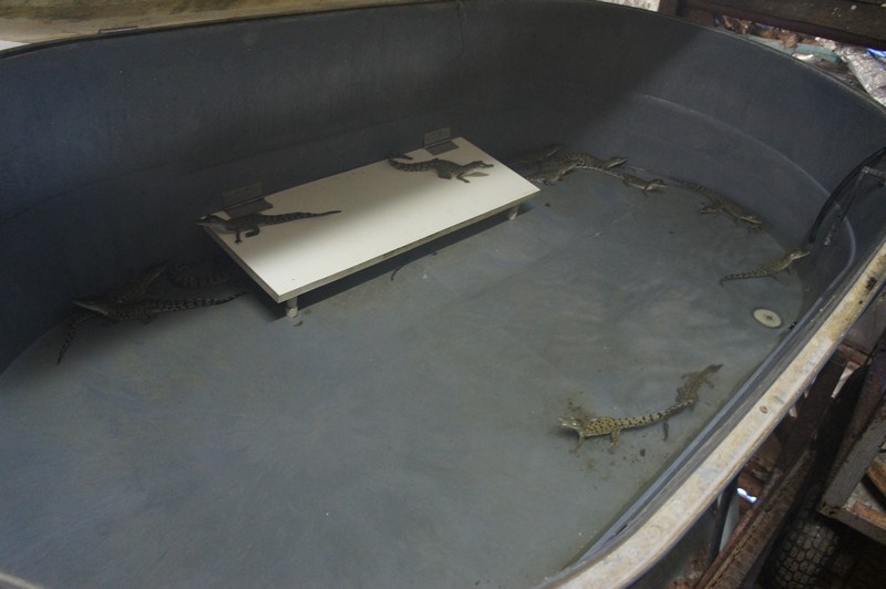 R/ Ma première réponse serait la gain de place. Mais il n'y a pas que cela, en effet les bébés crocodiles ont besoin de beaucoup de chaleur. Posés en hauteur, les baignoires en récupèrent un maximum. Dans cet hangar en métal tout isolé, la température peut atteindre 45°C sous plafond.