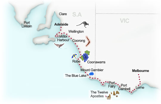 Nous quittons Adelaide aujourd'hui direction la "Great Ocean Road" situee aux environs de Melbourne.