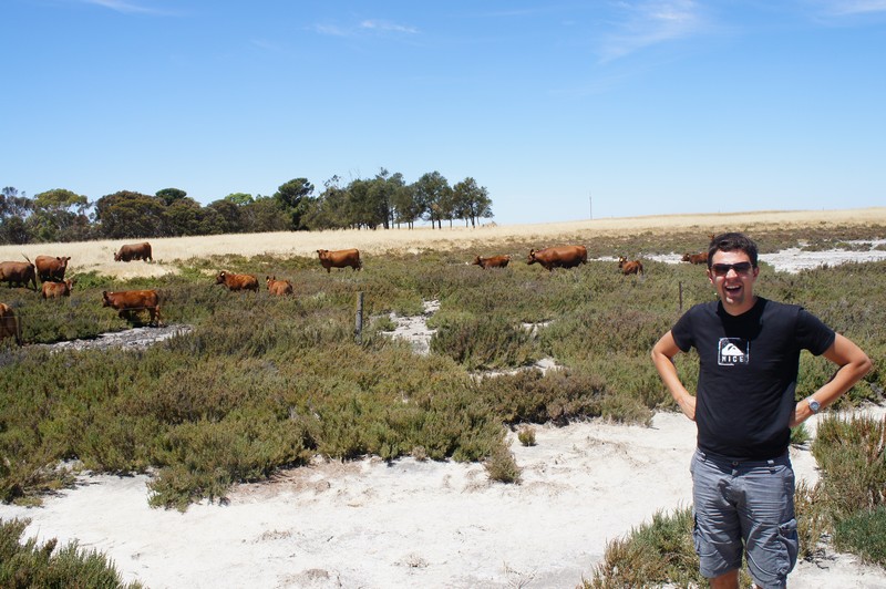 Sur la photo derrière Olivia je ne vois pas les kangourous mais plutôt une vache sur la colline... ce doit être l'effet de hémisphère Sud.